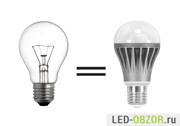 Но следует учитывать, что у обычной накаливания свет распространяется на 360 градусов, у диодной около 180 градусов. При установке в люстру или светильник следует учитывать светопропускаемость установленных плафонов. Ситуацию с диодным источником света может улучшить форма плафона, если его отверстие находится напротив колбы. В таком положении меньше света будет теряться внутри и больше выходить наружу.