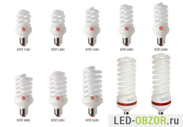 У вас дома наиболее распространена разновидность люминесцентных в виде КЛЛ, Компактных Люминесцентных Ламп. В магазинах и быту называются «энергосберегающие КЛЛ». Компактность достигается за счёт скручивания светящейся трубки в спираль.