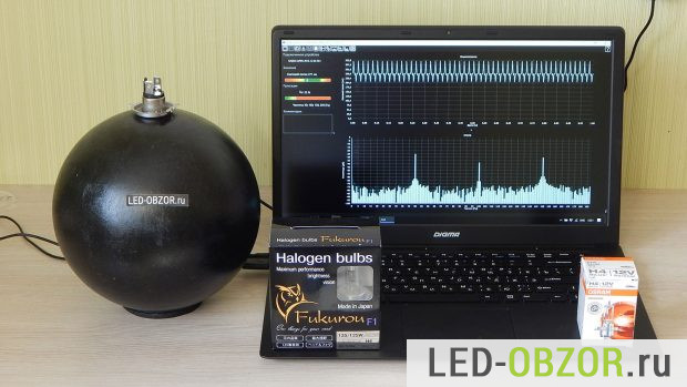 Количество люмен у каждого образца измеряем в фотометрической сфере, после прогревания в течение 1 минуты. В качестве эталона используем штатные галогенки Osram Original, которые устанавливаются на автомобильных заводах. В столбце «разница» проводится сравнение со штатным Осрам Ориджинал.