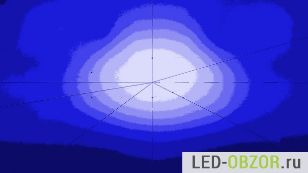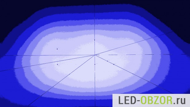 Для каждой светодиодной линзы замеряется светораспределение, которое наглядно показывает, где располагается горячее пятно. Без прибора этого сделать невозможно, глаз просто видит пятно и не может определить разницу в освещенности.