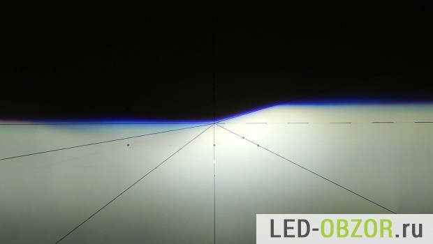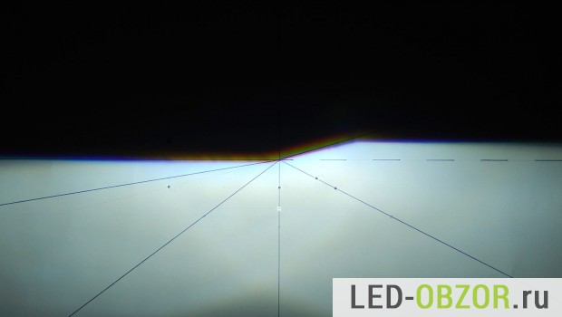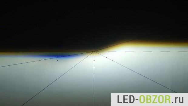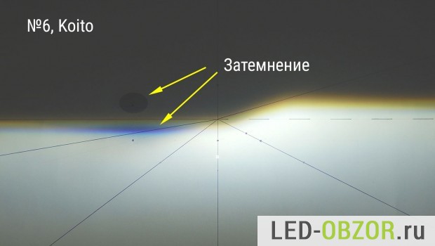 Среди представленных образцов больше всего особенностей у светодиодной линзы Koito. Она имеет затемнение в районе B50L и в левой нижней части светотеневой границы.