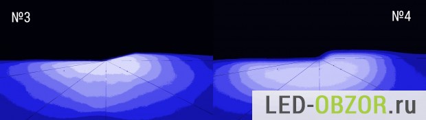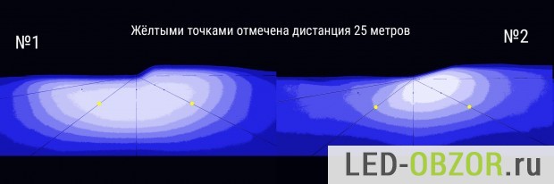 Максимальная освещенность ближней зоны у №1, буквально светит под ноги. Горячее пятно начинается в ближней зоне, гораздо ближе 25 метров, примерно через 15м. Многие водители будут в восторге, увидев как она работает.
