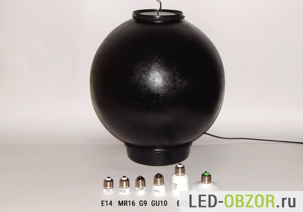Для измерения светового потока используем фотометрическую сферу USB с комплектом переходников под любой цоколь.