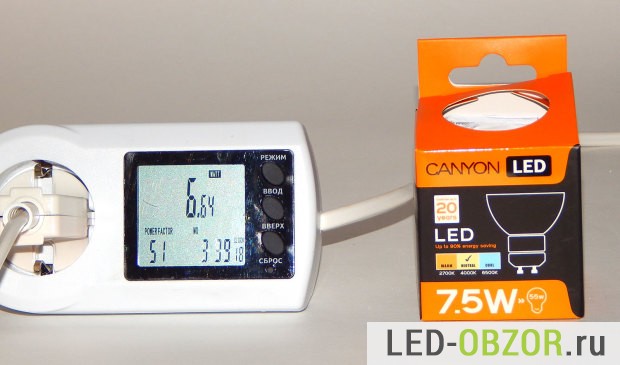 7,5W | GU10 | 594лм | 6,6W | 470лм | -20% |
