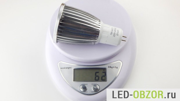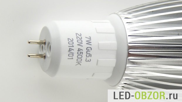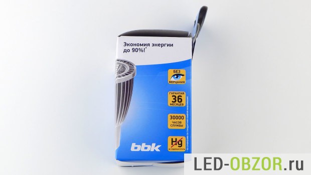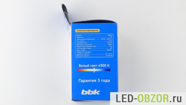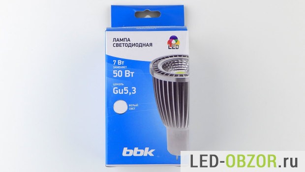 В обзоре участвует BBK MB74C светодиодная лампа GU 5.3 220V MR16. Из-за небольших размеров самого светильника её размеры ограничены. Мощность в 7W является максимальной для корпуса MR16.