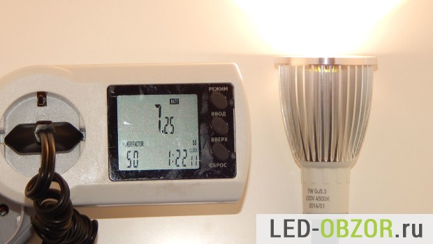 Потребляемая мощность G 5.3 при 220В получилась 7,25W из которой 10% приходится непосредственно на драйвер.