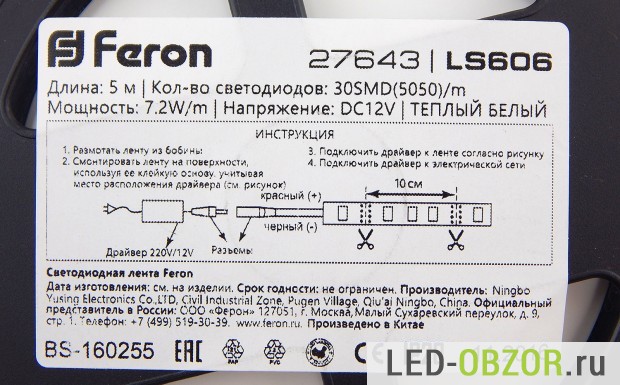 Магазин, который предоставил образцы http://sibertek.ru//lenta-smd-505030-5m-7.2w-feron/