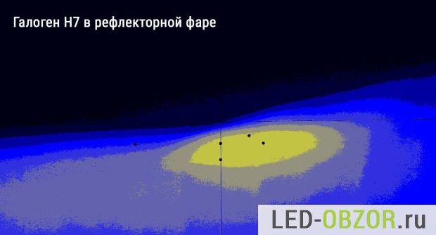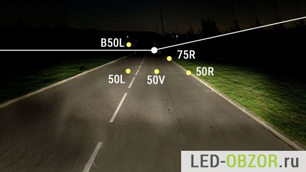 Световое пятно от разных источников имеет и разную форму, поэтому для сравнения ксенона, галогена и на диодах есть специальный ГОСТ Р 41.112-2005