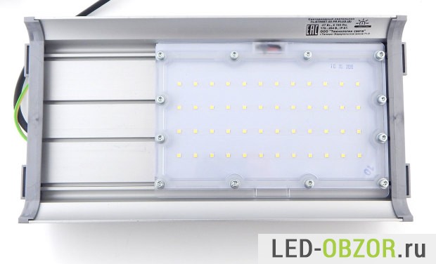 Размер корпуса используется стандартный для нескольких моделей, включая более мощные. Поэтому система охлаждения для модели на 57 Ватт получается с запасом. От мощных светодиодных светильников Street на 80W и 110W отличается уменьшенным количеством LED диодов и другими размерами поликарбонатного стекла.