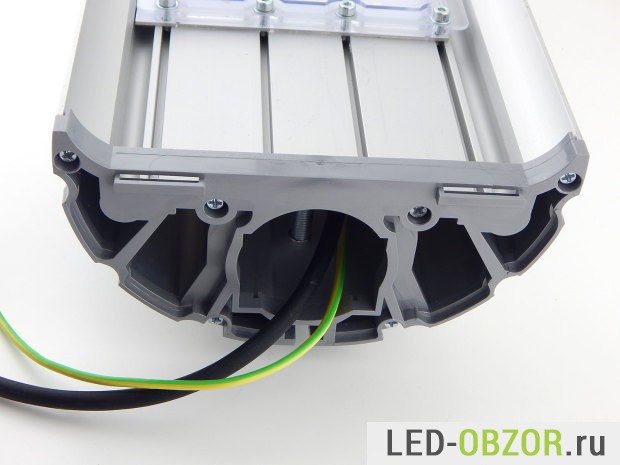 При практически одинаковой конструкции цены на уличные светодиодные светильники сильно отличаются, даже при равноценных комплектующих. Для оправдания высокой стоимости его делают необычной формы и более привлекательным внешне. В тестируемом образце нет ничего лишнего, консольное крепление находится внутри корпуса. Получается радиатор и является консольным креплением на столб, это уменьшает габариты и расход материала. В итоге потребитель получает очень удачное сочетание цены и качества.