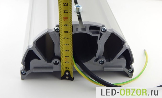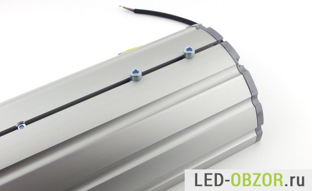 Конструкция светотехники для уличного освещения по сути ничем не отличается, состоит из радиатора, блока питания и светодиодов. Для производства используется широкий алюминиевый профиль. Корпуса нарезаются из длинного профиля, что позволяет предельно удешевить стоимость производства, никак не влияя на качество изделия. Торцы прикрыты фигурными заглушками из пластика.