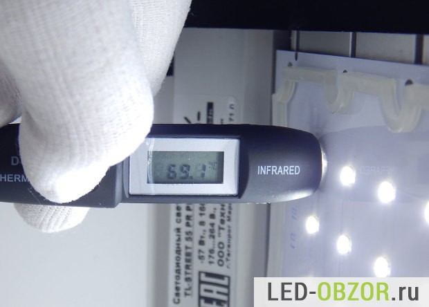 Результаты получились отличные, Osram Duris работают в идеальных условиях без существенного нагрева. В таком температурном режиме они проработают 100.000 часов. У других уличных светодиодных светильников они могут греться до 120 градусов, зависит от конструкции и качества сборки.