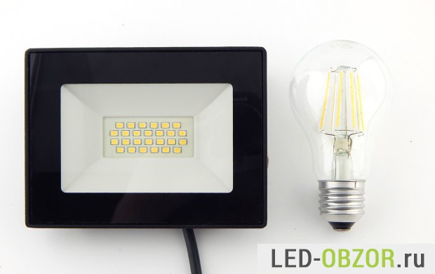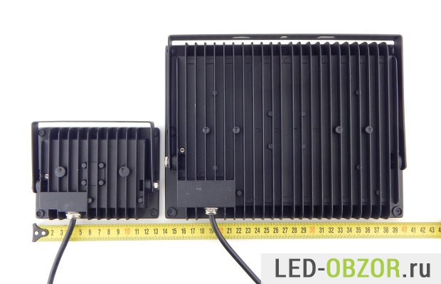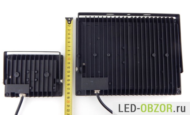 В обеих уличных светодиодных прожекторах установлен линейный драйвер, не имеющий фиксированного тока стабилизации. У такого источника питания высокий коэффициент мощности. При снижении напряжения питания в сети 220В будет снижаться и ток. Плюсом является низкая цена, минимум электронных компонентов, чем проще – тем надёжней.