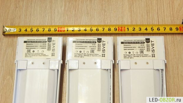 Образцы почти одинаковые, отличаются только мощностью и размерами. Система крепление одинаковая, поэтому можно с лёгкостью заменить маломощный на линейный светодиодный светильник помощнее.