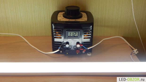 Источник питания обеспечивает работу без снижения яркости при напряжении 112V. Показатель очень хороший, большинство светильников работают в диапазон 170-240 вольт.