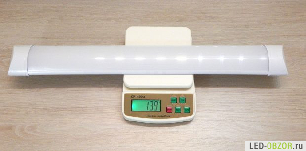 Данные линейные светодиодные светильники имеют низкую массу, вес длинного на 120см составляет всего 250грамм. Конструкция получается жестче и легче за счет рессеивателя, который не снимается.