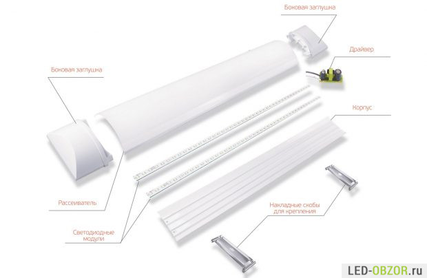 Корпус линейного светодиодного светильника литой, выполнен из пластика. Корпус и рассеиватель соединены во время литья, это обеспечивает отсутствие соединительных швов и защищает от проникновения влаги. Эксплуатировать можно в помещениях и на улице в летний и зимний период, например, разместив под навесом для освещения веранды или беседки.