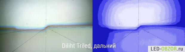 Точка | Diliht Triled, люкс | Ксенон, люкс | Разница в % |