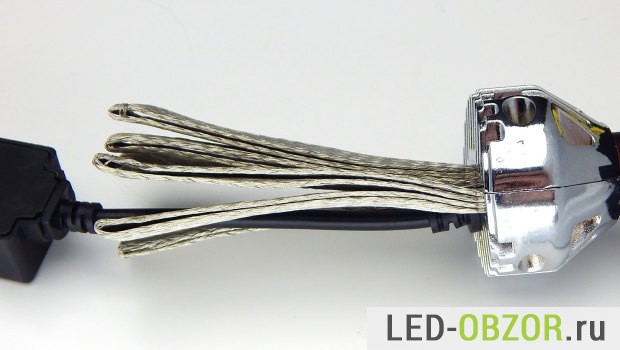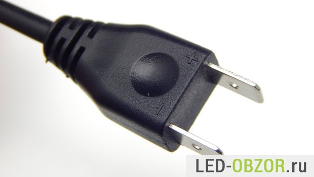 Для подключения используются стандартные автомобильные коннекторы. В нашем случае штекер аналогичен контактам led лампочки. На нём имеется маркировка о полярности контактов.