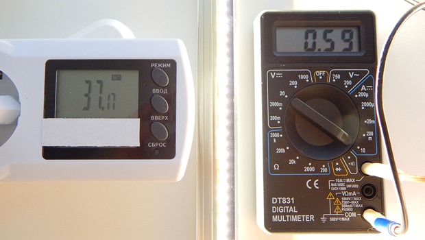 Чтобы узнать потребление именно светодиодов, замерим напряжение и силу тока.