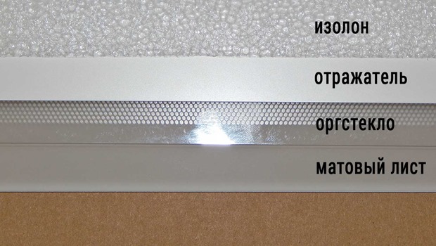 - матовый лист белого пластика, который видно с лицевой стороны 1мм.