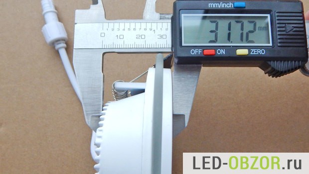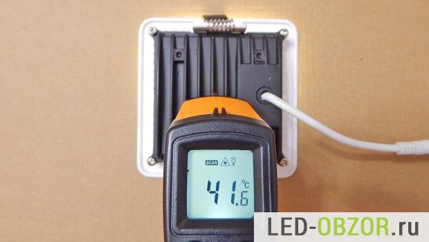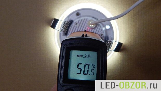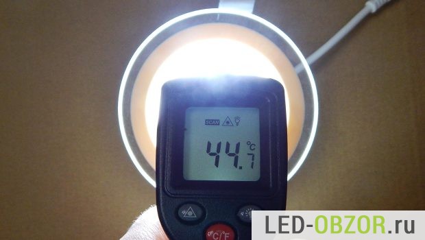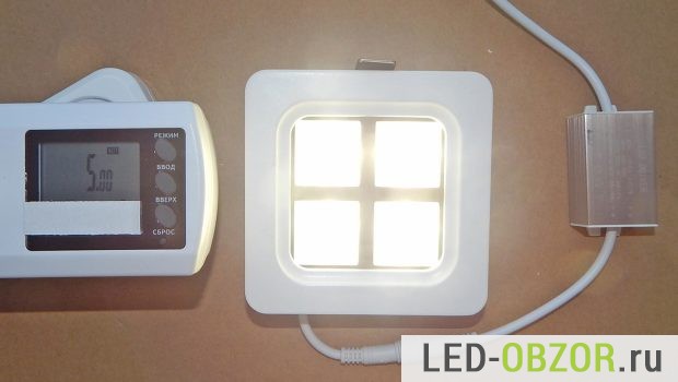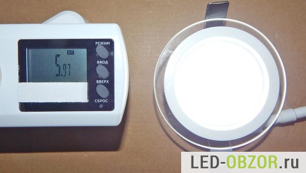 В результате измерений на прогретом точечном светодиодном светильнике для подвесных потолков получились следующие значения: