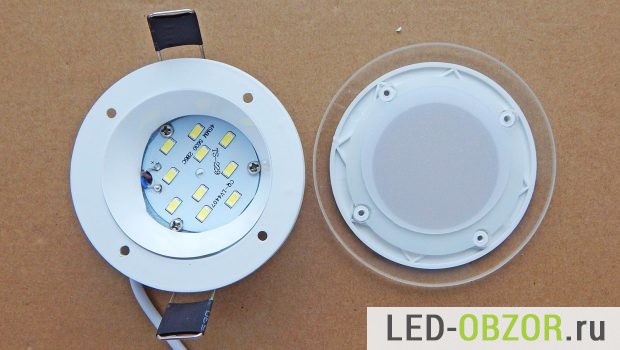 Более симпатичная и современная модель, по краям декорирована прозрачным оргстеклом, которое подсвечивается от основного света. Матовый рассеиватель легко убирается на тот случай, если вам потребуется больше яркости. Внутри 10 светодиодов SMD 5630, простой и надежный вариант. Диодный модуль стандартный, хорошая ремонтопригодность, легко заменить на новый, если будут проблемы. Такие модули часто встречаются в обычных светодиодках.