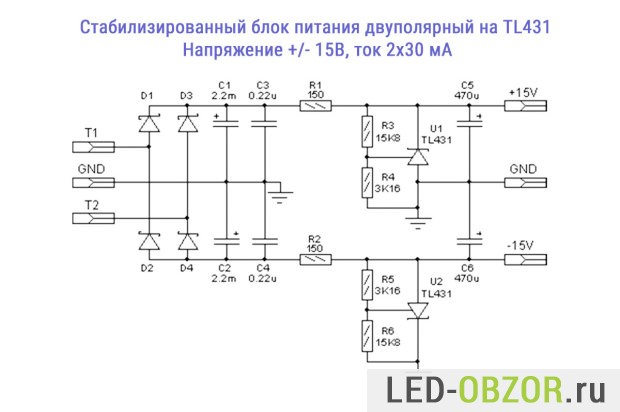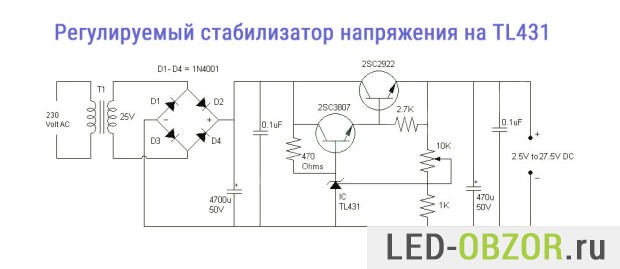 В десятку популярных электронных компонентов входит регулируемый стабилизатор TL431 и его брат ШИМ контроллер TL494. В источниках питания он выступает в качестве «программируемого источника опорного напряжения, схема включения очень простая. В импульсных блоках питания на ТЛ431 бывает реализована обратная связь и опорное напряжение.