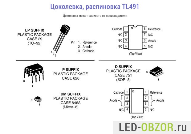 Как показывает практика, цоколевка TL431 может быть разной, и зависит от производителя. На изображении показана распиновка из даташита Texas Instruments. Если вы её извлекаете из какой нибудь готовой платы, то цоколевку ножек можно увидеть по самой плате.