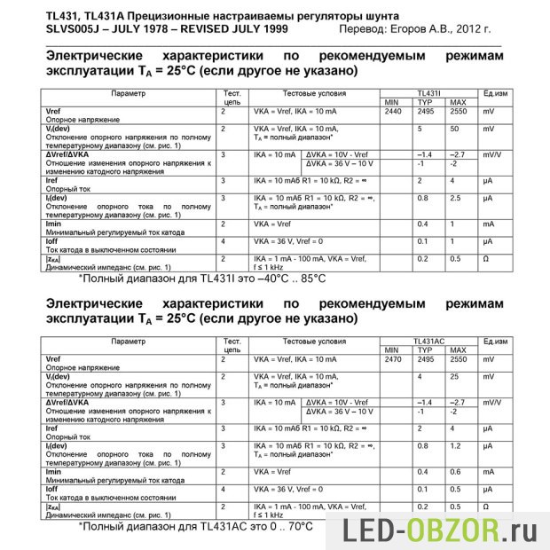 Многие радиолюбители не очень хорошо знают английский язык и технические термины. Я достаточно неплохой владею языком предполагаемого противника, но при разработке меня всё равно напрягает постоянное вспоминание перевода электрических терминов на русский. Перевод TL431 datasheet на русском сделал наш коллега, которого и благодарим.