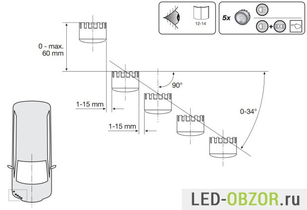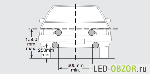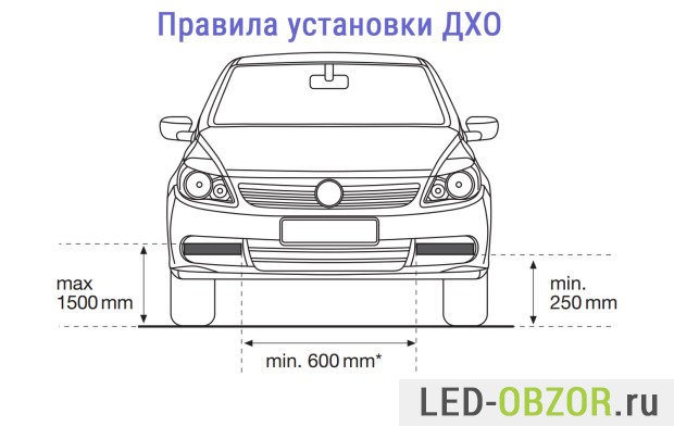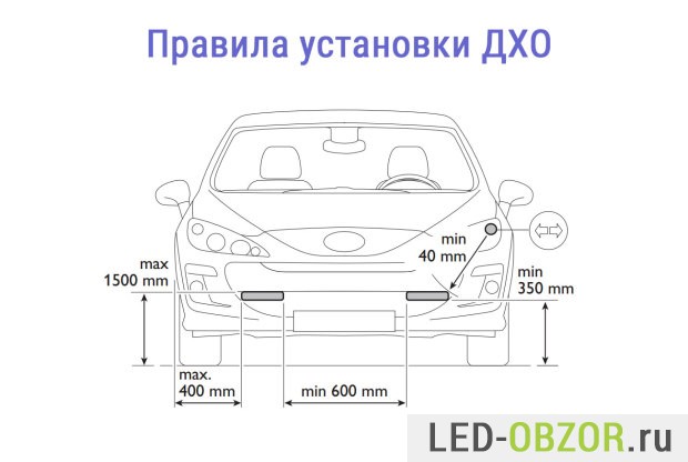 - сила света от 400 до 800 Кандел на каждый DRL;